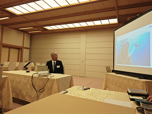 On October 15, 2025, the exploration results and underwater photographs were presented to those connected to the bereaved families of the Hitachi Maru Incident. The venue was kindly provided by Yasukuni Shrine, where those lost in the incident are enshrined, and the report was held at the gathering hall of the Yushukan. Fourteen descendants of those who died attended, allowing the report to be shared in a quiet and respectful atmosphere.