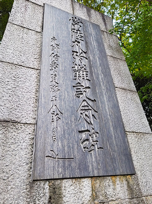 Yasukuni Shrine staff also explained the history of the Hitachi Maru Memorial Monument. After the incident, the monument was erected in Chidorigafuchi Park (Chiyoda, Tokyo), but it was removed and disposed of after World War II and its whereabouts became unknown. Later, it was unexpectedly found buried in the ground during construction work for Kudanshita Station, and it was reconstructed. The monument was discovered in a damaged condition and was repaired and reassembled; it now stands again within Yasukuni Shrine grounds. (The repaired central portion is the original part that was found; the surrounding sections were newly made during reconstruction.)